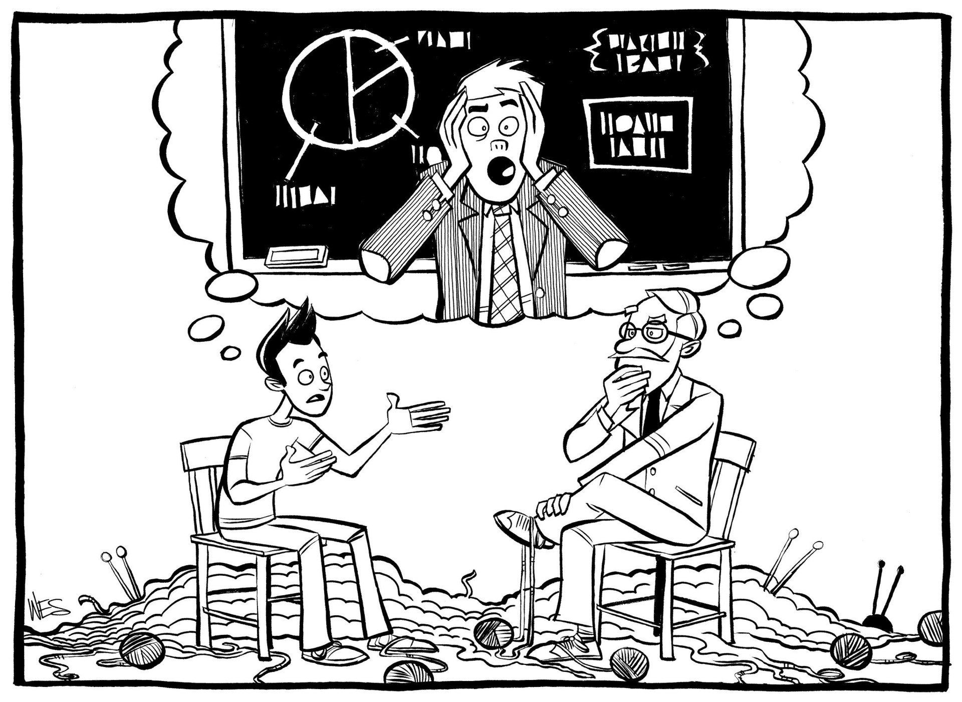 Die in diesem Cartoon dargestellte Szene ist nicht in dem Buch enthalten. Hier spielte der Lehrer eine Szene aus seinem Unterricht mit einer Art Aufstellung nach.
